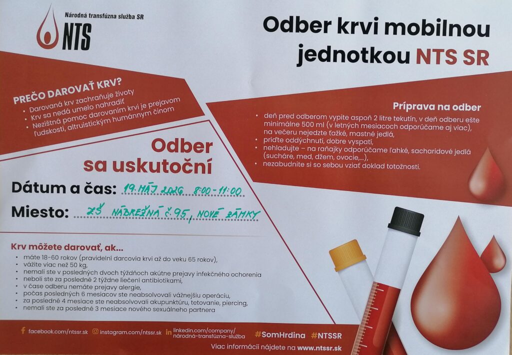 • Odber krvi mobilnou jednotkou